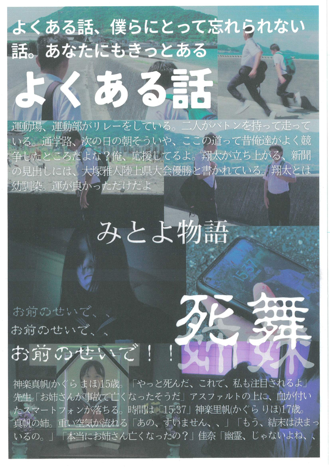 1月24日(土) 映画「みとよ物語」 開催日 2026年1月24日(土) 時刻 開場13:00 開演13:30 会場 三豊市文化会館マリンウェーブ マーガレットホール 出演者 内容 三豊市の中学生が制作した映画です! 参加型の楽しいイベントもあるそうです! 大きなスクリーンでぜひご覧ください✨ 座席 全席自由席 料金 入場無料 チケット 販売無し プレイガイド 更新日:2026年1月22日 1月23日(金) 「風の音フェスタ2026...
