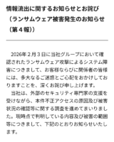 2026年2月3日に当社グループにおいて確認されたランサムウェア攻撃によるシステム障害につきまして、お客様ならびに関係者の皆様には、多大なるご迷惑とご心配をおかけしておりますことを、深くお詫び申し上げます。