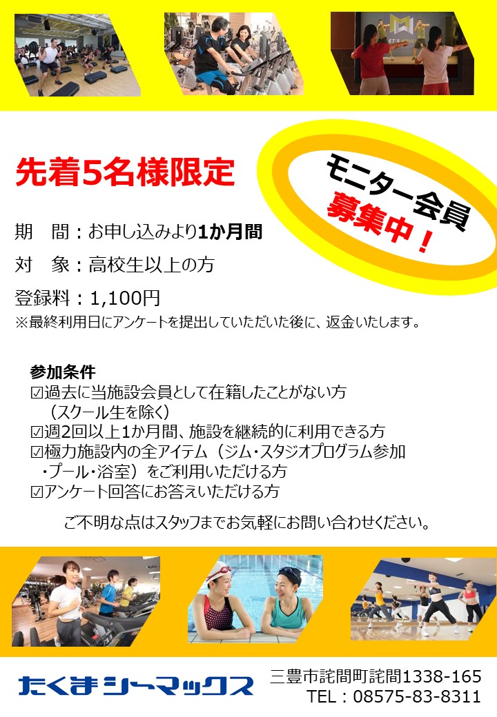 モニター会員募集!先着5名様限定